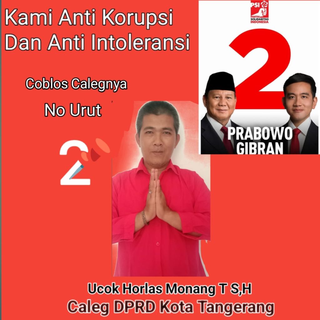 Ucok Horlas ‘S. H yang sehari-harinya sebagai seorang wartawan yang bergerak dalam menyerap suara hati nurani rakyat dalam bentuk karya tulisannya Dan sekaligus LBH Gani , kini tampil sebagai Caleg DPRD Kota Tangerang Dari Partai Solidaritas Indonesia ( PSI) fail 4 nyaitu Kecamatan karang tengah, Dan Kecamatan ciledug , Demi Meningkatkan Kesejahtraan Warga Masyarakat disegala bidang sektor aspek sosial